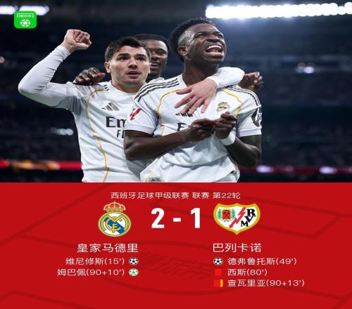 北京時間2月1日西班牙足球甲級聯賽 聯賽 第22輪,皇家馬德里主場對陣巴列卡諾。皇家馬德里維尼修斯破門,姆巴佩...