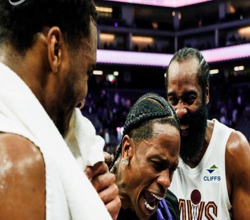 TravisScott現場觀戰哈登騎士首秀,兩人賽后激情相擁