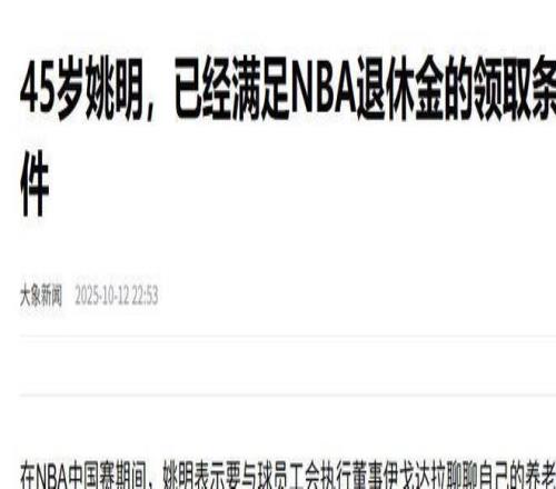 大象新聞:(45歲姚明,已經(jīng)滿足NBA退休金的領(lǐng)取條件2025.10.12)