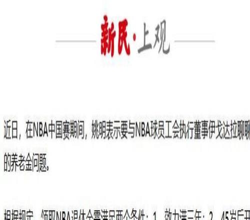 新民晚報(bào):(姚明開始領(lǐng)養(yǎng)老金了2025.10.13)