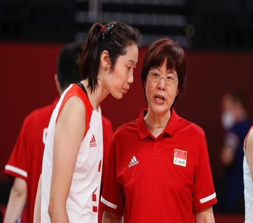 2021年7月29日,中國隊(duì)主教練郎平(右)與朱婷交流。當(dāng)日,在東京奧運(yùn)會女排小組賽中,中國隊(duì)以2比3不敵俄羅斯運(yùn)動員。 中新社記者 韓海丹 攝。視覺中國 圖