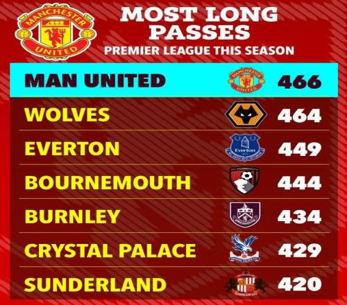 阿莫斯賽前已經(jīng)明確表示會(huì)采取這種戰(zhàn)術(shù),因?yàn)樗f曼聯(lián)的前場人員結(jié)構(gòu)適合長傳后爭奪第二落點(diǎn)的打法。新門將塞納·拉門斯尤其堅(jiān)決,他一點(diǎn)不介意自己的大腳長傳成功率低,在與利物浦之戰(zhàn),他的19.5%的傳球成功率全場倒數(shù)第一,46次傳球只有9次成功。首秀對桑德蘭,拉門斯44次傳球17次成功。