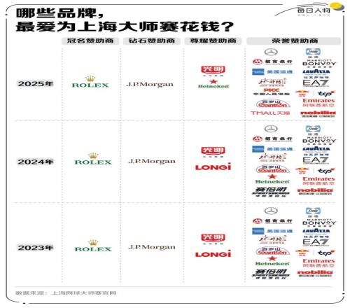 同樣引人注目的是上海大師賽。作為中國賽季另一場重頭戲,該賽事共吸引46家贊助商支持,在全部9站ATP1000大師賽中贊助商數(shù)量高居榜首。除了長期擔(dān)任冠名贊助商的勞力士,意圖強化本土客戶形象的摩根大通,光明乳業(yè)和喜力一同分享了第三級贊助商的位置。其中,光明乳業(yè)成為該賽事中贊助等級最高的本土品牌。