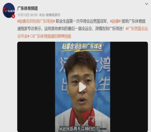 接受采訪時,趙睿也強調本屆全運會是自己最后一屆全運會,并深情告別廣東球迷。