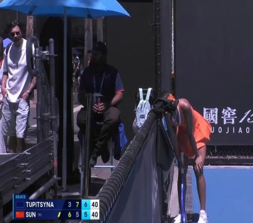 高溫天氣讓孫心然身體不適,這場比賽她屢屢在比賽間隙彎腰休息。圖皮岑娜隨后保發成功,來到了孫心然非保不可的發球局。體能消耗巨大的孫心然回球缺少足夠的威脅性,缺少反擊的力度,只能等待圖皮岑娜出現失誤,但是對手的失誤很少。
