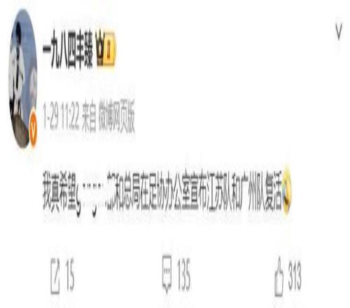 高薪+高獎金,以及極其嚴苛的隊規,讓當時的廣州恒大球員和教練團隊沒必要為了一點小錢而鋌而走險。沒有從業人員涉事,更讓人惋惜廣州隊的解散。對此,記者豐臻在個人社交平臺上呼吁(下圖),我真希望足協宣布江蘇隊和廣州隊復活。