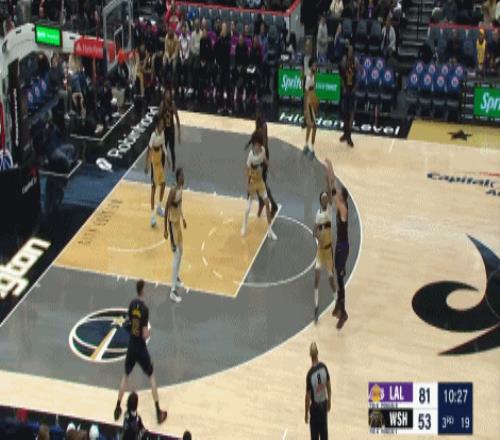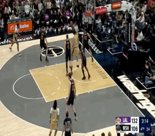 半場只打了18分04秒,14中9,三分8中5,罰球5中3,狂砍26分11籃板11助攻2搶斷的三雙數(shù)據(jù),湖人隊史最快,歷史第五快。