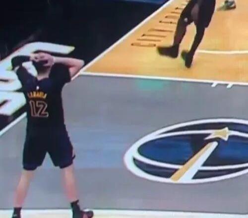東子真是氣不打一處來,被逼出界外之際,直接當(dāng)著裁判和奇才主帥的面,急中生智將球砸向了奇才球員,還不忘搖頭苦笑:MD,輸不起是吧?