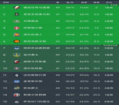 西部最新積分榜