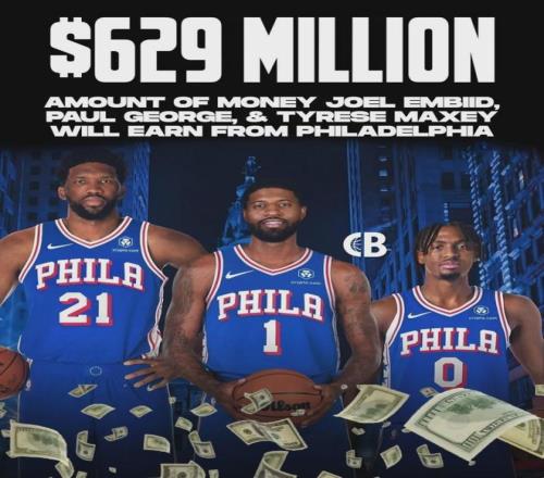 恩比德合同還剩4年2.48億美元,2029年夏天到期,平均年薪超過6000萬美元。馬克西合同5年2.04億美元,也是2029年夏天到期,還剩4年1.69億美元。喬治合同4年2.12億美元,2028年夏天到期,還剩3年1.63億美元。