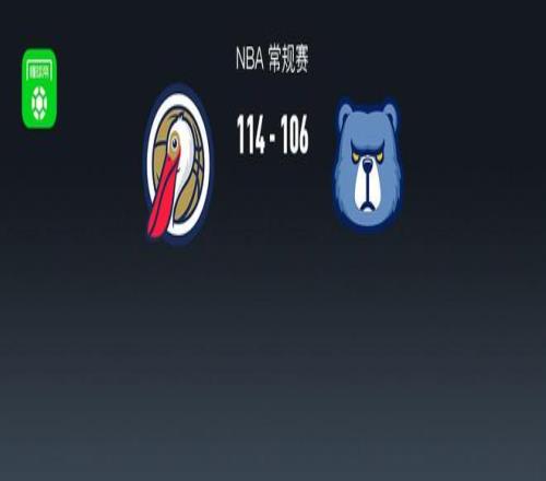 第四節鵜鶘德里克-奎因拿下8分,灰熊凱姆-斯賓塞拿下6分,最終鵜鶘114-106戰勝灰熊