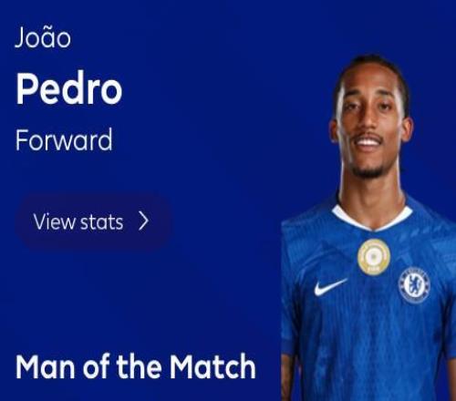英超第24輪,切爾西主場(chǎng)3-2逆轉(zhuǎn)擊敗西漢姆聯(lián),此役替補(bǔ)登場(chǎng)傳射建功的切爾西前鋒若昂-佩德羅當(dāng)選全場(chǎng)最佳球員。