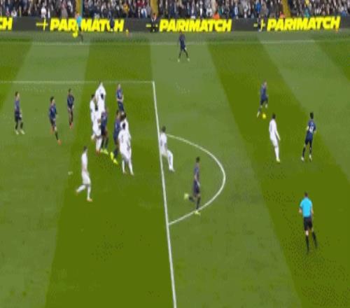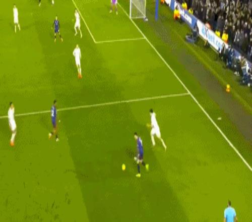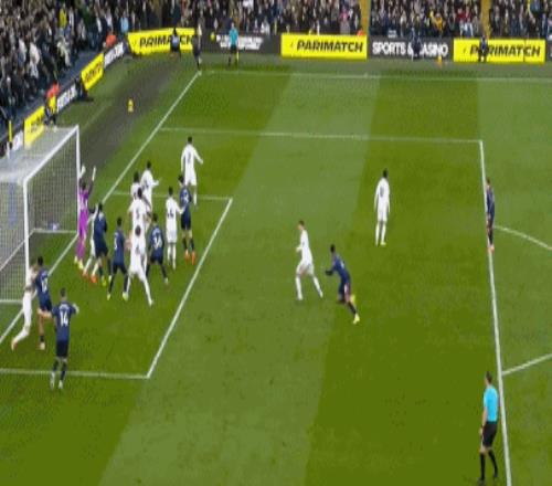 萬-比薩卡右路送出橫傳,鮑恩轉身傳中制造混亂,巴勃羅搶點踢空,皮球卻詭異地滾進球門死角,切爾西0-1落后。