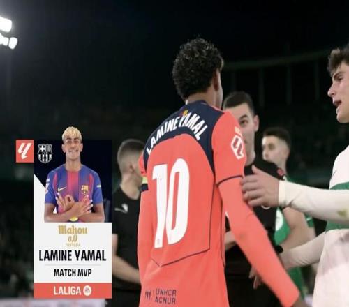 首開記錄+創造8次機會,亞馬爾當選西甲官方全場最佳球員 懂球帝 2026-02-01 07:17:00 西甲第22輪,巴塞羅那客場3-1擊敗埃爾切,此役打入一球的巴薩前鋒亞馬爾當選西甲官方全場最佳球員。此役客場對陣埃爾切,首發出戰的亞馬爾在比賽第6分鐘破門為巴薩首開記錄。本場比賽打滿全場的亞馬爾創造8次機會、嘗試過人7次、成功過人4次、射正3次,均為全場最多。最終經過評選,亞馬爾當選西甲官方全場最佳球員。西甲免費觀看_亞馬爾免費觀看_埃爾切隊免費觀看_西甲高清在線_亞馬爾高清在線_埃爾切隊高清在線 西甲 亞馬爾 埃爾切隊 倫敦德比 巴塞羅那隊 上一篇: ESPN:馬競嘗試過簽何塞洛佩斯和凱奧若熱,但全部遭到拒絕 下一篇: 各項賽事進球助攻均上雙,拉什福德是本賽季西甲球員第三人