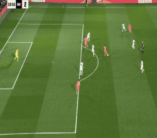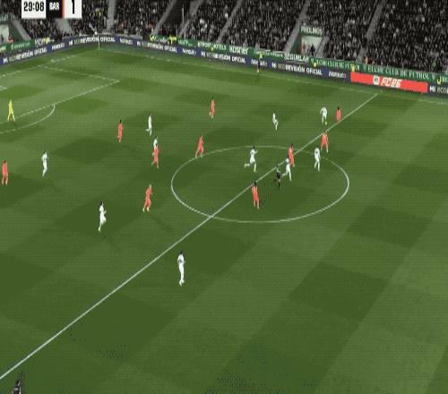 奧爾莫的射門擊中橫梁后,第29分鐘,巴薩習慣性防線前壓,阿爾瓦羅·羅德里格斯反越位成功,冷靜將球打進。