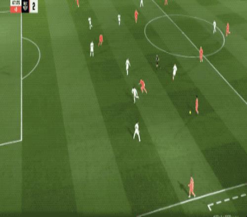 第40分鐘,浪費了一個又一個機會的費蘭·托雷斯終于將球打進,德容的助攻相當無私,費蘭無人盯防,推射破門。