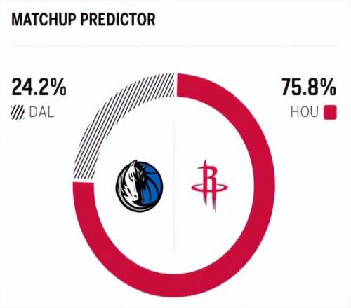 這是兩隊本賽季的第四次交鋒,前三次交手,火箭僅僅只有1勝2負,獨行俠意外稍占優勢。賽前,美媒ESPN對本場比賽進行了勝率預測,火箭隊勝率高達75.7% ,優勢巨大,而獨行俠勝率則僅為24.3% 。