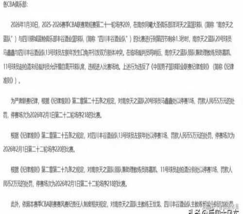 真是“屋漏偏逢連夜雨”啊,這不,四川男籃開賽21連敗,至今還沒“開和”,球隊(duì)工資發(fā)放都成問題,卻因上輪與同曦隊(duì)發(fā)生沖突,收到了CBA公司罰單,主帥和球員分別受到罰款或禁賽的處理……