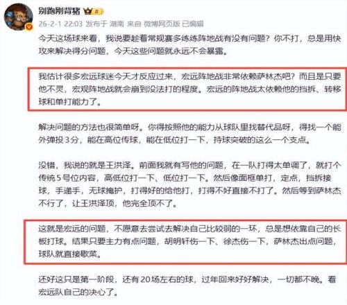 相較于麥穗豐老師的含蓄,另一位廣東媒體人別跑剛背豬老師就直接多了,他直言,“我估計(jì)很多宏遠(yuǎn)球迷今天才反應(yīng)過(guò)來(lái),宏遠(yuǎn)陣地戰(zhàn)非常依賴(lài)薩林杰吧?而且是只要他不靈,宏觀陣地戰(zhàn)就會(huì)崩到?jīng)]法打的程度。宏遠(yuǎn)的陣地戰(zhàn)太依賴(lài)他的擋拆、轉(zhuǎn)移球和單打能力了?!?/strong>