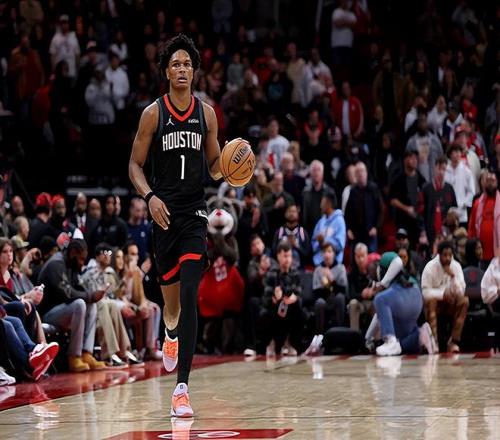 本場比賽中,火箭的先發控衛阿門-湯普森(Amen Thompson)的表現還是相當不錯的。阿門全場出場40分39秒,投籃15中7,罰球9中7,得到了21分8籃板9助攻2搶斷的準三雙數據,其中還包括了5個前場籃板,正負值為+15。阿門在本場比賽中在進攻端保持了不錯的進攻效率,他在對手內線還是能夠利用自己的運動能力和沖擊力制造一定的威脅的,這一點也是值得肯定的。最關鍵的是,阿門在傳球和組織方面起到了相當不錯的效果,確實是起到了后場核心的作用,這一點更是超出了預期。除此之外,阿門在防守端的表現也是值得肯定的,而且他在前后場籃板爭搶方面的作用也非常明顯。阿門在本場比賽中算是很好地扮演了自己的角色,并且為球隊的勝利做出了不小的貢獻。