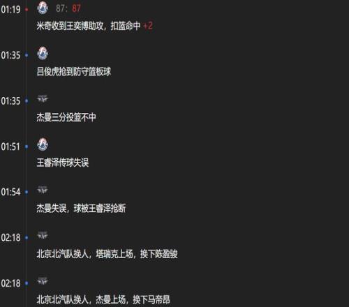 后續(xù)趙睿三分不中,杰曼還對米奇犯規(guī),米奇連續(xù)罰球打進(jìn)將比分反超。當(dāng)然此后北京還有取勝的可能性。無奈的是,趙睿獲得兩次罰球不中,如果這兩個(gè)球打進(jìn)的話,北京可以追平分差。