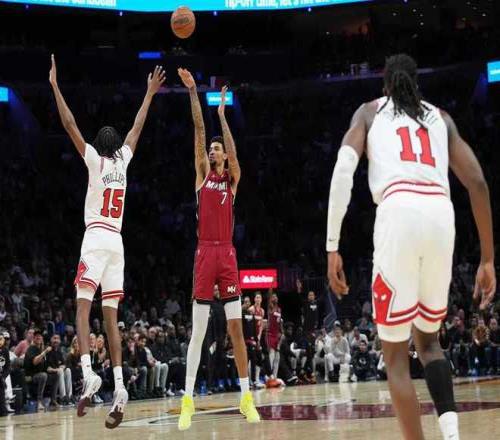 進入第四節比賽,熱火88-97落后,熱火一波7-0攻勢追到僅差2分,公牛隨后擴大7分領先優勢。熱火連得7分追到106-106,雙方之后持續緊咬比分,多森姆連續得分維持3分優勢。維金斯三分追到116-116,布澤利斯上籃與三分連得5分打停熱火,熱火三分不中。布澤利斯繼續罰球擴大優勢鎖定勝局,熱火已經無力回天,最終熱火惜敗公牛。