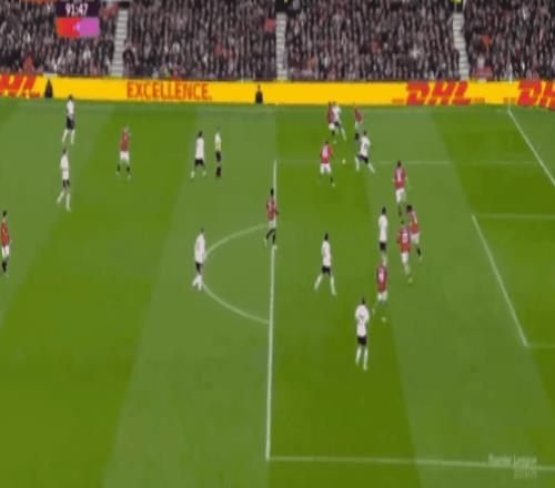 比賽剛剛開打第5分鐘,曼聯就給了客隊一個下馬威,阿瑪德右路內切后兜射遠角,被富勒姆門將飛身撲出,第16分鐘庫尼亞突入禁區后倒地,為曼聯贏得點球,不過主裁判回看VAR后改判禁區外任意球,B費挑傳后點,卡塞米羅頭球建功,幫助曼聯取得了1-0的領先,最近10場比賽狂造12球的B費,也以11次助攻領跑英超助攻榜。