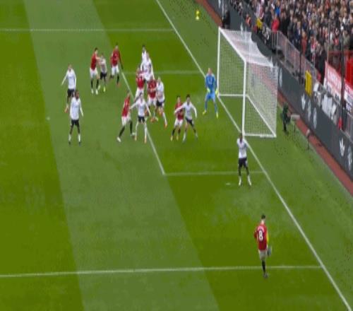 第19分鐘,B費定位球傳中,卡塞米羅頭槌破門,曼聯打破僵局,1-0!
