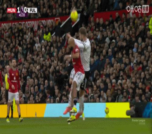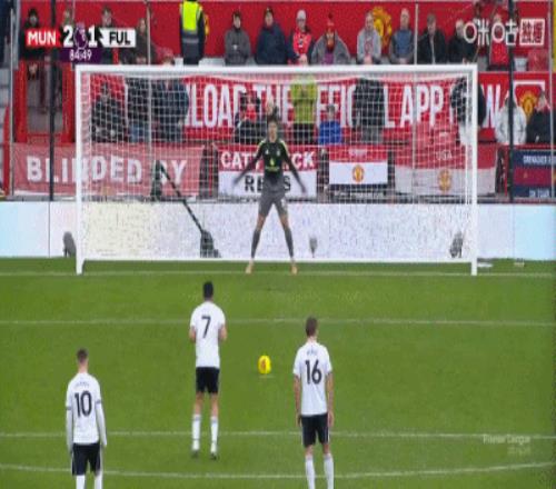 第85分鐘,馬奎爾飛鏟送點,希門尼斯親自主罰命中,富勒姆1-2落后曼聯