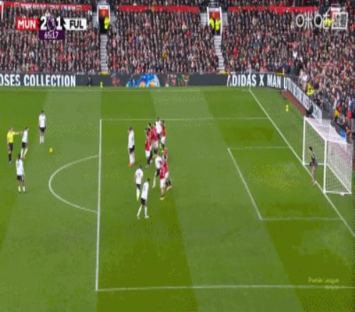 第90+1分鐘,世界波!凱文禁區外遠射打進死角,曼聯2-2被富勒姆追平!