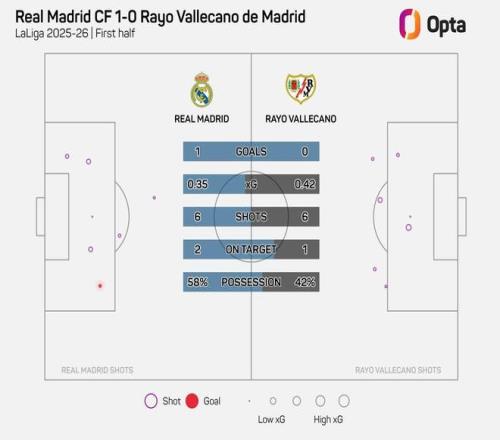 皇馬本場上半場射門6次,本賽季主場比賽僅次于對陣曼城的5次 懂球帝 2026-02-02 01:27:31 西甲第22輪,皇家馬德里主場對陣巴列卡諾,上半場戰罷,皇馬1-0領先,皇馬在上半場僅完成6次射門,為球隊本賽季主場比賽上半場第二少。此役主場對陣巴列卡諾,皇家馬德里在上半場完成6次射門,其中2次射正,由維尼修斯打入一球。據統計,皇馬本賽季各項賽事主場比賽中,只有在歐冠對陣曼城時上半場射門次數更少(5次),阿韋洛亞執教皇馬西甲首秀對陣萊萬特時也是6次。西甲免費觀看_曼城免費觀看_皇馬免費觀看_西甲高清在線_曼城高清在線_皇馬高清在線 西甲 曼城 皇馬 巴列卡諾 主場比賽 皇家馬德里 上一篇: 西甲爭冠格局白熱化:前2只差1分,皇馬3.5億歐雙子星爆發 下一篇: 阿韋洛亞無緣神紀錄!皇馬西甲28天首次丟球,4人防線被打穿