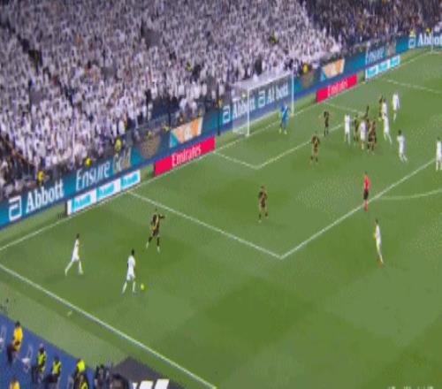 第85分鐘,塞瓦略斯精準傳中,卡馬文加甩頭攻門擊中立柱彈出