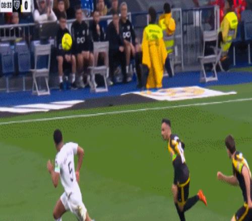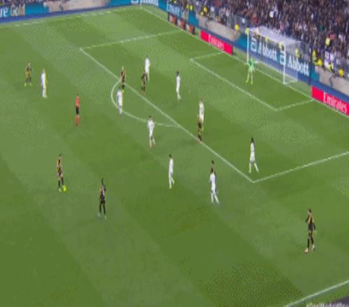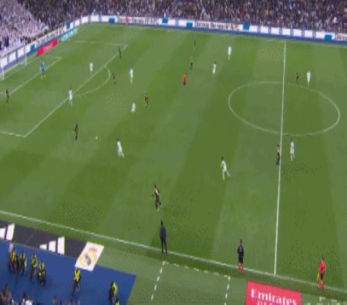 第46分鐘,單后衛陣容,皇馬場上正牌后衛僅赫伊森,楚阿梅尼撤回防線
