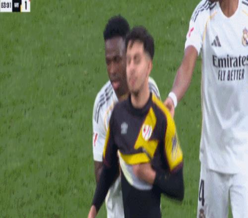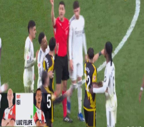 第83分鐘,發生沖突,維尼修斯和阿霍馬克各領一張黃牌
