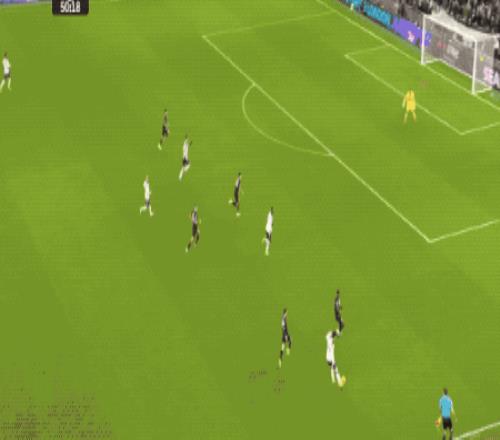 第50分鐘,熱刺的進攻磕磕絆絆,接到西蒙斯的傳球,烏多吉起腳爆射,多納魯馬做出關鍵撲救。