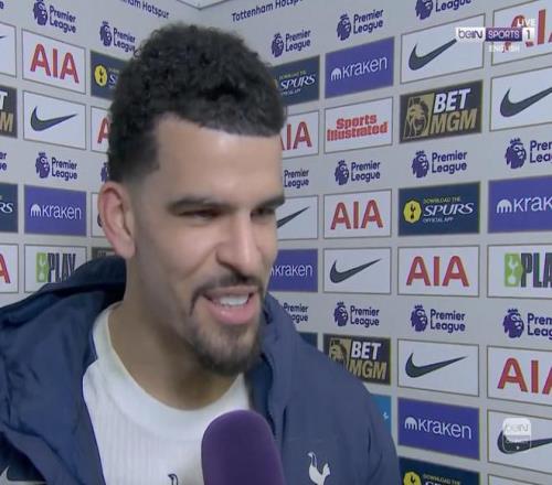英超第24輪,熱刺主場2-2戰平曼城,賽后,此役上演梅開二度的熱刺前鋒索蘭克接受了拜因體育的采訪。