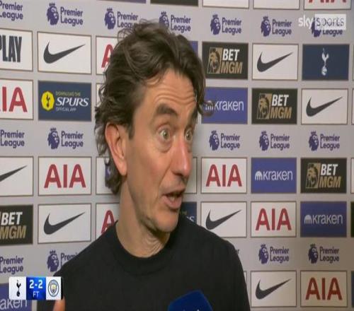 率隊在英超第24輪主場2-2打平曼城后,托特納姆熱刺主帥托馬斯-弗蘭克接受了天空體育的采訪。