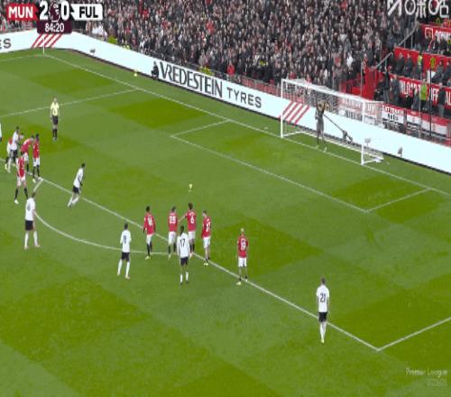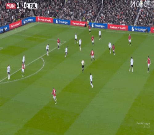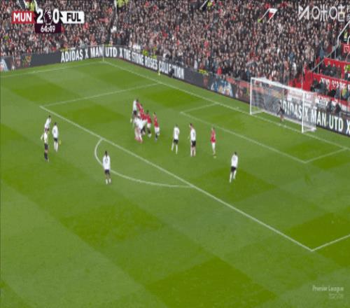 第19分鐘,B費助攻,卡塞米羅后點泰山壓頂頭槌破門,曼聯1比0富勒姆!