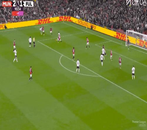 補時第4分鐘,謝什科得球轉身打門完成反絕殺!曼聯3比2富勒姆。