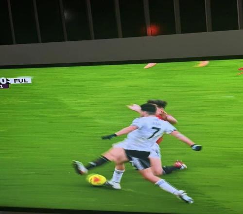 如果因為昆卡的鏟球判罰,根據規則,VAR只能檢查這一動作,并且判定沒有犯規,富勒姆將獲得一記球門球。因為禁區外拉人漏判,并不是一個重大誤判,VAR視頻助理裁判無法介入。