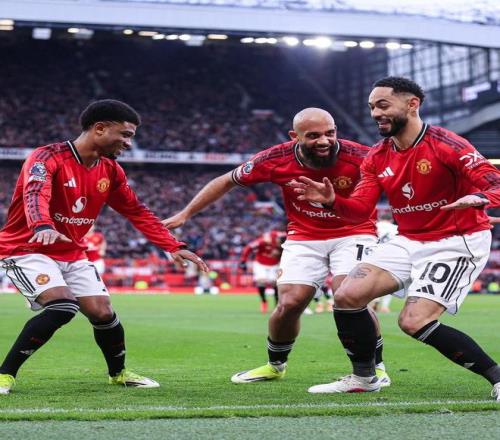 本場比賽第55分鐘,卡塞米羅直塞,庫尼亞小角度爆射破門,幫助曼聯2-0領先,姆伯莫和阿馬德一起和庫尼亞慶祝跳舞。