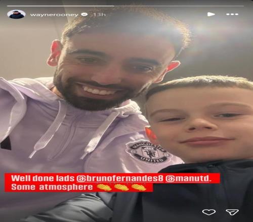 ?賽后,魯尼在社媒曬出了B費和自己小兒子的合影,并表揚了曼聯球員今天的表現:“做得好啊伙計們。”