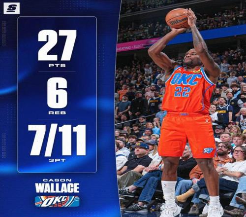 卡森華萊士成為本場雷霆最大奇兵,全場14中9,三分11中7,拿了27分6籃板2搶斷,單場27分、7記三分均為華萊士賽季最高(此前最高是17分、5記三分)。