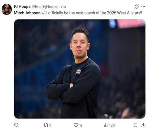 隨著馬刺升西部第二,米奇-約翰遜成為西部全明星主帥,東部全明星主帥是比克斯塔夫。(東西部全明星陣容名單早些時候已經全部出爐)