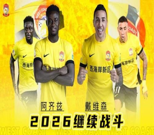 青島西海岸在俱樂部官方社交賬號上官宣,稱經友好協商,阿齊茲完成轉會加盟,與戴維森正式達成續約留隊,新賽季阿齊茲、戴文森將繼續身披9號和11號戰袍,為青島西海岸征戰賽場。