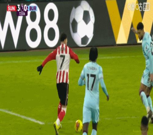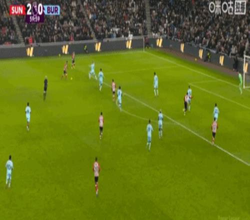 第72分鐘,塔勒比左路內切兜射破門,桑德蘭3-0伯恩利