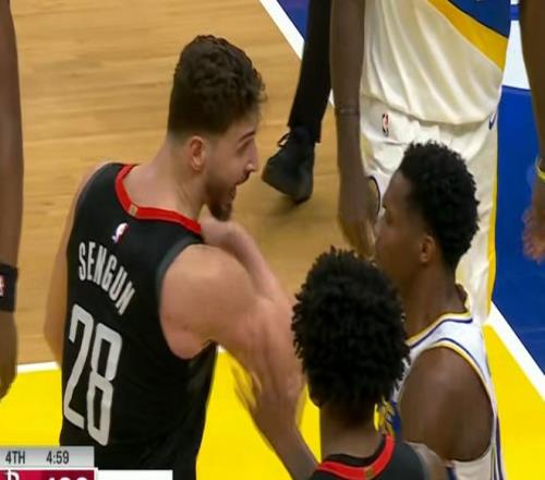 于是在比賽當(dāng)中,申經(jīng)多次和對手發(fā)生過沖突,打得好得同時也是火力全開,甚至還和對方球員發(fā)生過不止一次的沖突。申京和對手發(fā)生過兩次沖突,倒地?fù)屒虻臅r候有過一次,更主要的是單挑馬瑟林的時候,轉(zhuǎn)身上籃被對面推了一下腰。他當(dāng)場就急眼了,返身就要揍馬瑟林,兩邊互相推搡,申京甚至非常罕見的伸出右手一肘子錘在了對面的胸口。