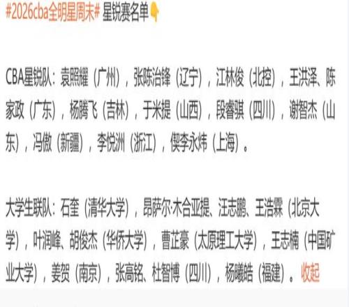 而到時CBA星銳會對陣大學(xué)生聯(lián)隊,看看到時雙方能不能給到一些驚喜的表現(xiàn)吧。
