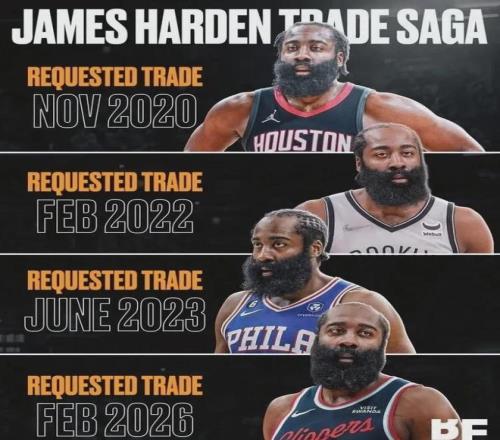 爆料王Shams:快船和哈登正在努力在今年交易截止日前分道揚鑣......