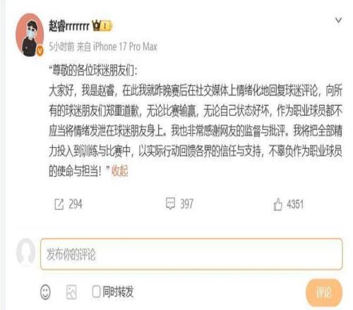 不得不說趙睿和他團(tuán)隊(duì),或者說北京首鋼隊(duì)的公關(guān)團(tuán)隊(duì)確實(shí)厲害,出事后第一時(shí)間向球迷和社會(huì)公眾道歉,不做過多的辯解,只說自己的不足之處,并且說自己認(rèn)識(shí)到了錯(cuò)誤要改正,態(tài)度也很好非常的誠懇,這樣球迷也沒有什么說的了。球員作為公眾人物,尤其趙睿還是男籃國家隊(duì)的隊(duì)長,他更應(yīng)該注意自己日常的言行,被球迷網(wǎng)友罵幾句說幾句感覺不舒服了自己可以私底下發(fā)牢騷,但是在網(wǎng)上和球迷網(wǎng)友互懟肯定是不行的,不管任何時(shí)候都要控制好自己的情緒。